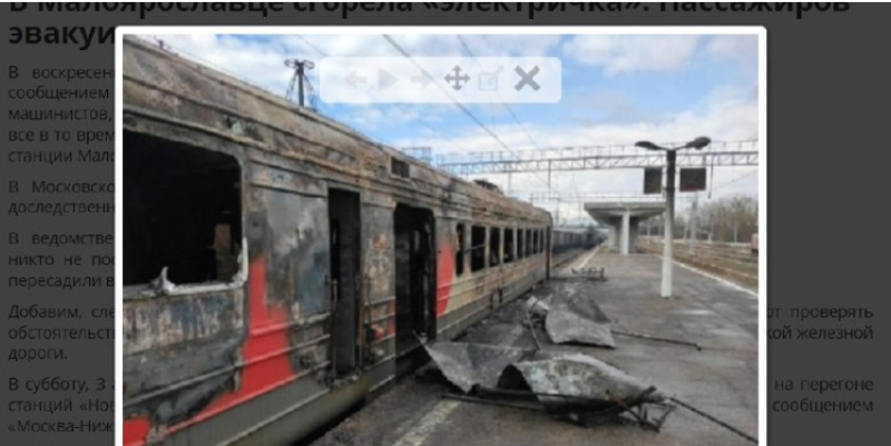 Однако на самом деле никакой поезд никто не бомбил. Новость была придумана от и до, а "роль" подбитого украинцами состава "сыграла" сгоревшая в Калужской области в 2021 году электричка. Фейкомёты также добавили кадры из польского Белостока, где в 2010 году взорвались цистерны с бензином, чтобы показать, какой сильный пожар спровоцировала украинская атака.