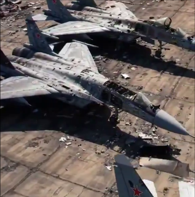 Военкор Юрий Котенок также обратил внимание на то, как плотно стоят друг к другу "уничтоженные" истребители.