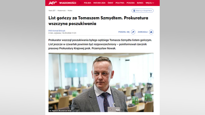 Польская прокуратура объявила в розыск Томаша Шмидта. Скриншот: радиостанция zet