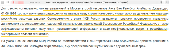 Итак, шпиона выслали (в ответ почти наверняка они вышлют кого-то из наших, но это уже другой вопрос), операцию англичан, судя по пресс-релизу ФСБ, где говорится, что со стороны ван Ренсбурга то были лишь "попытки получения чувствительной информации в ходе неофициальных встреч с российскими экспертами в области экономики", – прервали.