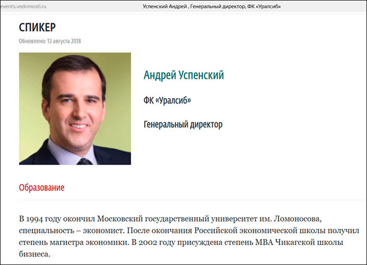 Кстати, о карьерах выпускников программы Chevening. Андрей Успенский – наглядное подтверждение, как удачно может складываться их будущее. В 2012-2017 годах он был вице-президентом финансовой корпорации "Уралсиб", входил в правление ФК, а с сентября 2014-го возглавлял УК "Уралсиб" в качестве гендиректора.
