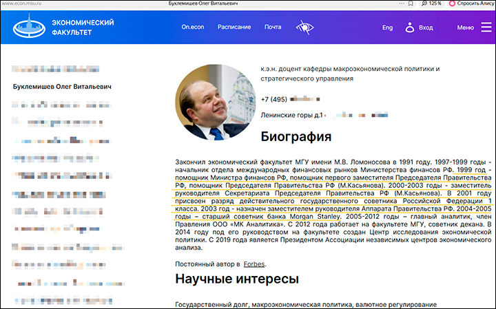 Между тем Олег Буклемишев – человек крайне интересный. Это сейчас он заместитель декана и доцент кафедры макроэкономической политики и стратегического анализа родного экономфака МГУ (он сам выпускник этого факультета), постоянный автор "Форбс" и спикер ютуб-канала "Живой гвоздь", где регулярно выступает вместе с иноагентами и критикует своё государство. Он давний и надёжный соратник беглого экс-премьера Михаила Касьянова*, при котором сделал успешную карьеру в финансовом блоке правительства. И кстати, по нашей информации, едва не стал замглавы Минфина – по крайней мере его кандидатура рассматривалась в этом качестве. А потом, не исключено, мог прыгнуть и выше.