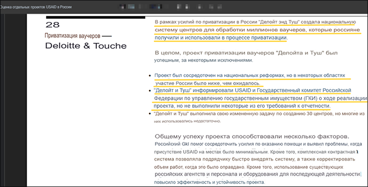 Фрагмент отчёта USAID об участии в приватизации России (контракт исполняла аудиторская фирма "Делойт энд Туш")