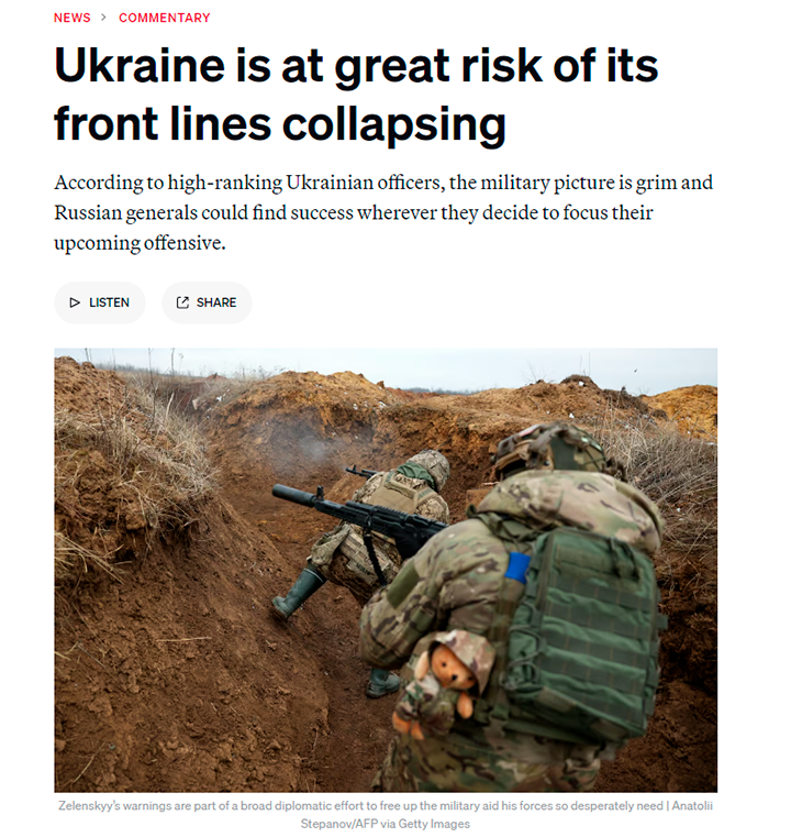 Западная пресса вторит Киеву о плачевной ситуации на фронте. Скрин с сайта Politico