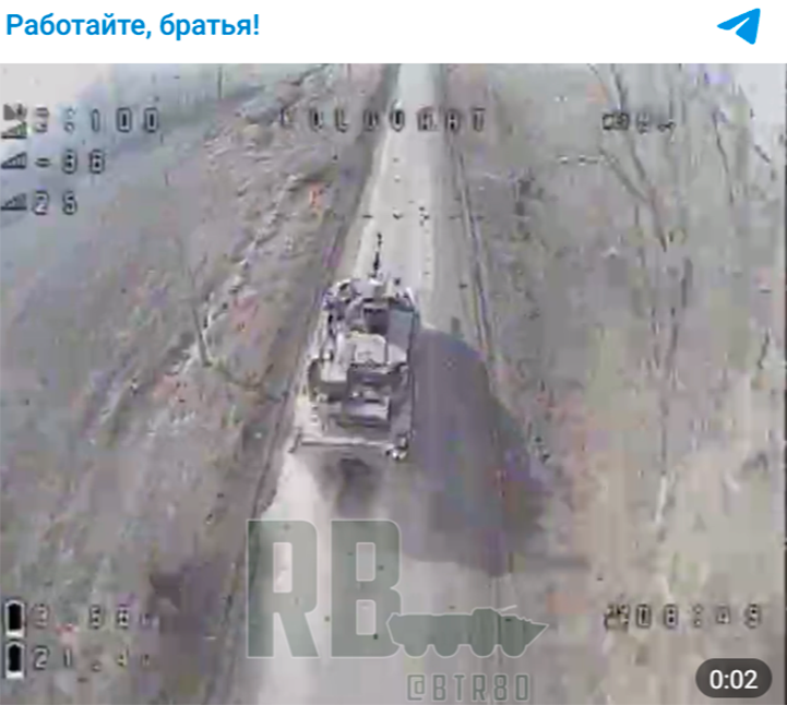 Русские уничтожают очередной Abrams. Скрин с ТГ-канала "Работайте, братья"