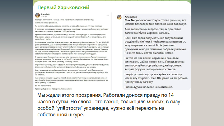 — цитирует телеграм-канал "Первый Харьковский" откровения мобилизованного киевского журналиста Артёма Ильина.