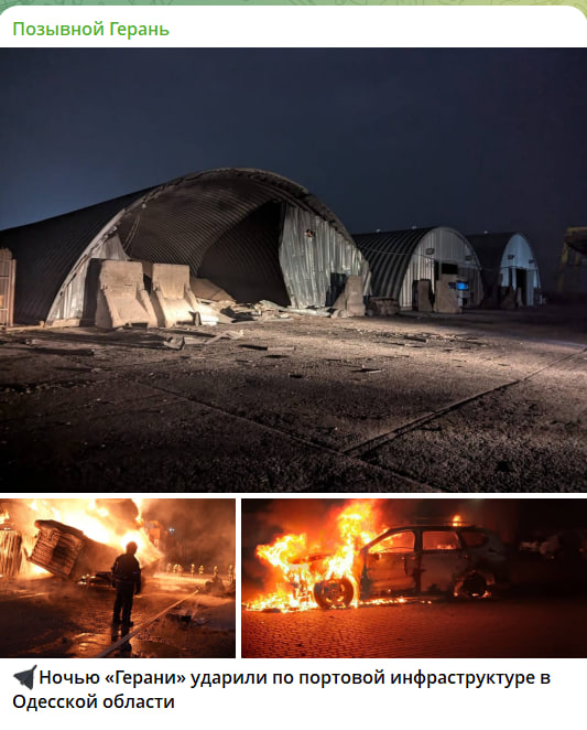 Бурлачья Балка, Одесская область, – удар нанесён по логистическому комплексу "Навилайн" и инфраструктуре причала №4, где сосредоточены складские и перегрузочные мощности. Возгорание охватило металлокаркасные ангары, используемые под хранение грузов на паллетных стеллажах промышленного типа с нагрузкой до нескольких тонн на секцию. Конструкции обрушились. Уничтожены погрузчики уровня Toyota 8FD и Linde H30, а также телескопические машины типа JCB Loadall.