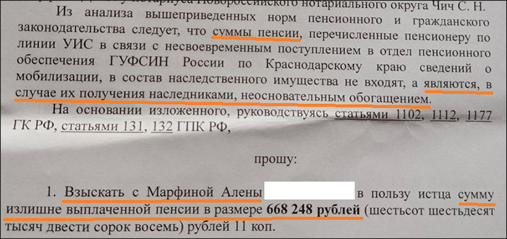 Виноватым в "обогащении" пытаются сделать погибшего героя // Скриншот искового заявления
