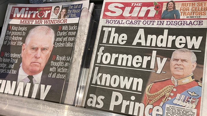 Британские газеты в октябре прошлого года сообщали, что король Карл III отобрал все титулы и почести у принца Эндрю. Фото: Steve Travelguide/Shutterstock