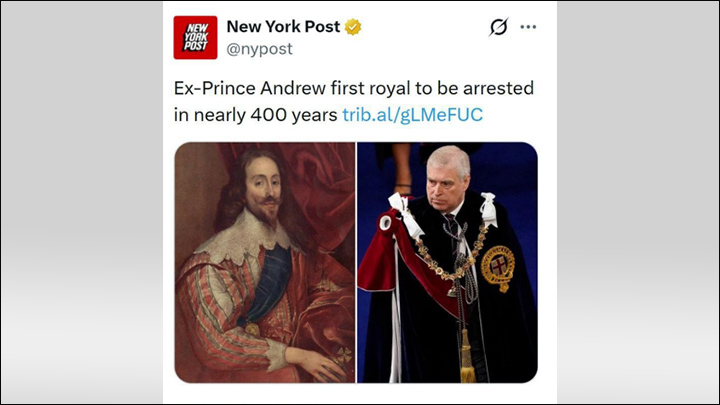 В 2022 году принц, который не вылезал из скандалов и развёлся с женой, был по решению Елизаветы II лишён почётных воинских званий и покровительства ряда общественных организаций. 30 октября 2025 года Букингемский дворец сообщил, что Эндрю лишается титула "принц" после новых публикаций о его связях с Эпштейном.