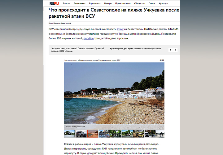 Пляжи Севастополя: здесь не было военных объектов! Скриншот страницы сайта Российской газеты