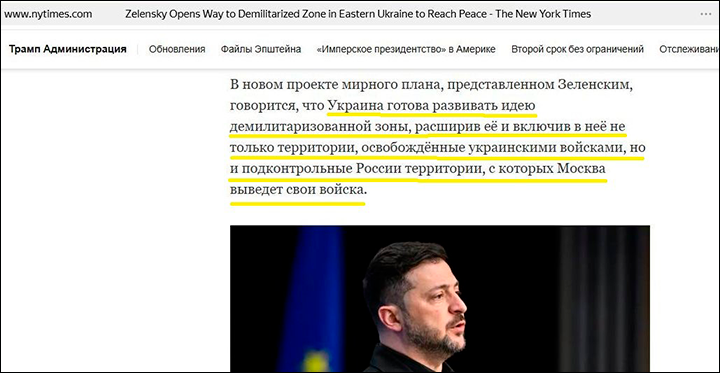 "Щедрое предложение" от Зеленского. Скриншот: интернет-сайт nytimes.com (автоперевод)