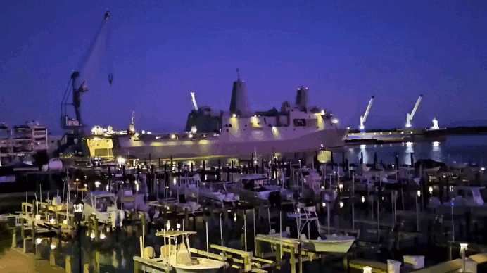 Буквально через несколько часов после слов Трампа морпехи начали готовить корабль снабжения USS Arlington на базе Норфолка. GIF видео ТГ канала https://t.me/Warhronika/12202