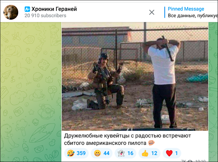 Реакция местных жителей объясняется тем, что они приняли сбитого пилота за иранца. Скриншот: ТГ-канал "Хроника Гераней"