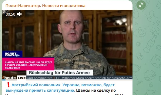 Одновременно с этим на связь вышел австрийский полковник, преподаватель военной академии в Винер-Нойштадте Маркус Райснер, который неожиданно заявил… что вероятность заключения мира сегодня как никогда близка.