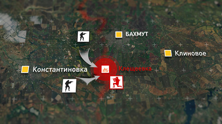 На Бахмутском направлении русская армия за последние несколько дней продвинулась к западу от железной дороги. Противник передаёт, что он полностью утратил контроль над станцией Клещеевка. Однако южная часть посёлка, ключевая высота к западу от населённого пункта и прилегающие лесопосадки остаются за украинскими солдатами. Поэтому все разговоры о полном освобождении посёлка преждевременны.
