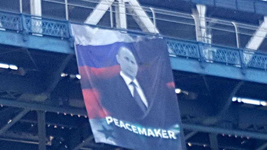 В день вручения Нобелевской премии мира на Манхэттенском мосту в Нью-Йорке появился огромный плакат с портретом Владимира Путина. Многие связывают этот поступок двоих неизвестных с днем рождения российского президента, который совпал с датой объявления лауреатов. Но надпись на английском "Миротворец" на фоне российского и сирийского флагов прямо указывает на связь акции с событиями в Осло.