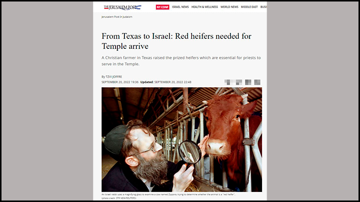 И вот сразу пять таких телиц были найдены в США именно в наше время. В 2022 году все эти телицы в годовалом возрасте были доставлены в Иерусалим, о чём сообщали и все израильские газеты, в частности The Jerusalem Post.