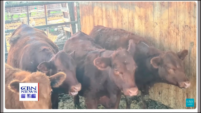 Скрин телеканала CBN News: вот они, привезённые в Израиль "непорочные" рыжие телицы.