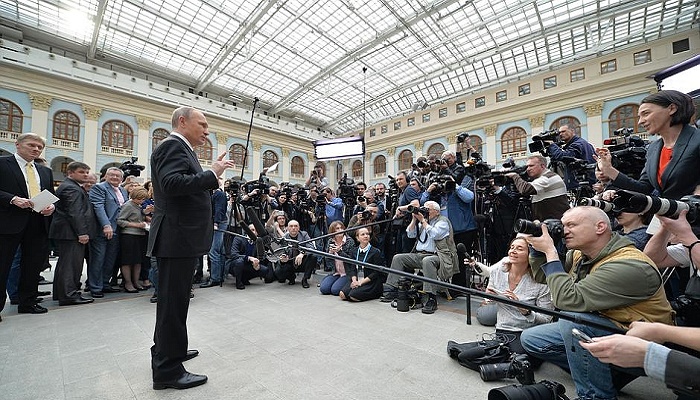 В 2015 году президент отвечал на вопросы журналистов на протяжении 3 часов 57 минут. Затрагивались вопросы о личной жизни, о прослушке в России, о санкциях Запада, о присоединении Аляски, о расширении НАТО, о российских нефти и газе. Также были затронуты темы о новой власти на Украине, о Януковиче, о присоединении Крыма, о ситуации на юго-востоке Украины и многое другое.
