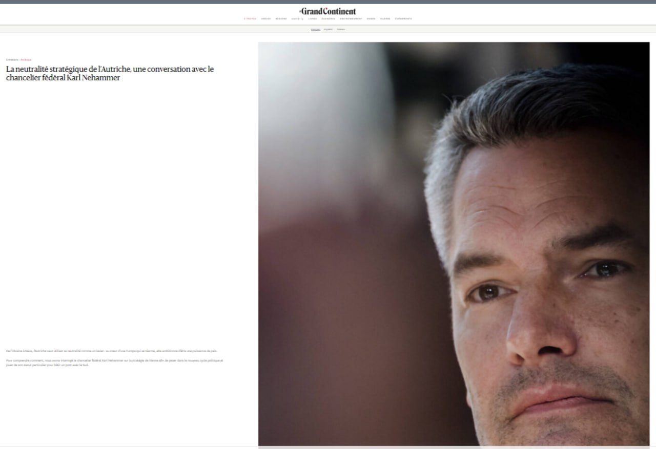 Однако благодушную информационную картину, которую пытаются нарисовать США и Швейцария относительно единства мира по поводу войны на Украине, испортил канцлер Австрии Карл Нехаммер. Параллельно с заявлением представителя МИД Швейцарии и убаюкивающим комментом Bloomberg он дал интервью французскому журналу Le Grand Continent, в котором признал: