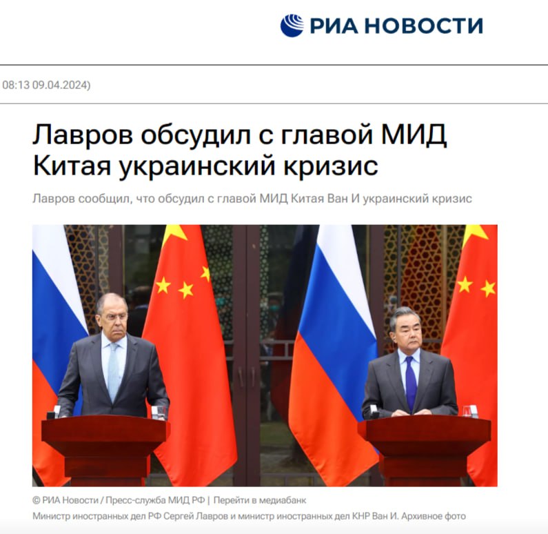 По итогам состоявшегося только что визита в Китай и своих переговоров с главой МИД КНР Ван И Сергей Лавров заявил, что обсудил со своим китайским коллегой украинский кризис. Стороны подтвердили бесперспективность международных встреч по этому вопросу, которые не учитывают интересы Москвы, а продвигают "формулу мира" Зеленского.