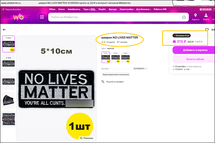 А на маркетплейсах, типа "Озон" или Wildberries, можно найти шевроны с тем же лозунгом радикалов, что был и на футболке нападавшего ученика.