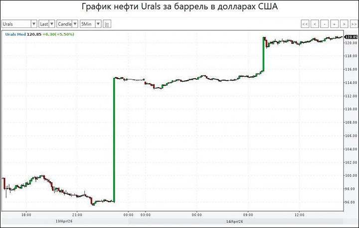 На прошлой неделе цены немного ослабли на фоне переговоров иранской стороны и США в Исламабаде, но они ожидаемо ни к чему не привели, и кривая стоимости углеводородов снова поползла вверх, вплоть до 120 долларов за бочку, но и это не потолок. Если хуситы перекроют пролив Баб-эль-Мандеб (он соединяет Красное море и Аденский залив), то нефть станет не чёрным золотом, а просто золотом.