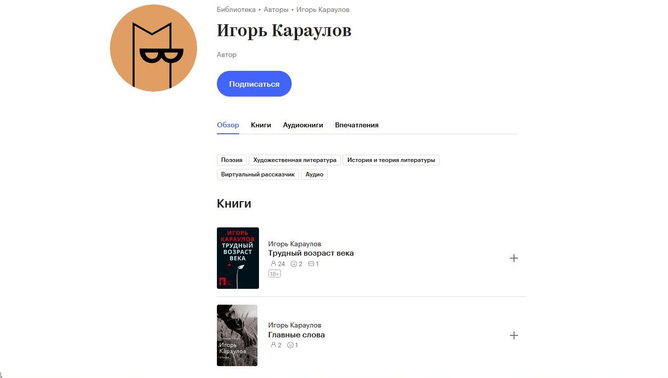 Игорь Караулов в одном из книжных онлайн-магазинов. Скриншот: интернет-сайт bookmate.ru