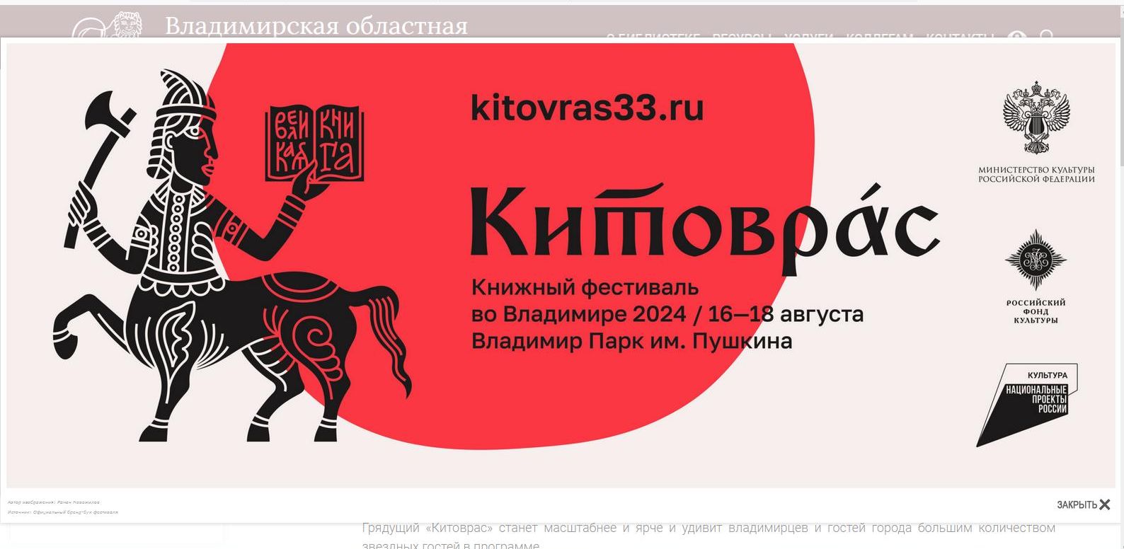 Афиша книжного фестиваля "Китоврас". Скриншот: официальный сайт Владимирской научной областной библиотеки
