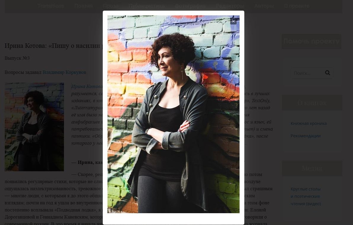 И одним из таких гостей станет медик по образованию и поэтесса по призванию Ирина Котова. Уроженка Воронежа особую известность среди либеральных культурных кругов получила примерно десять лет назад, когда перешла на нерифмованную поэзию.