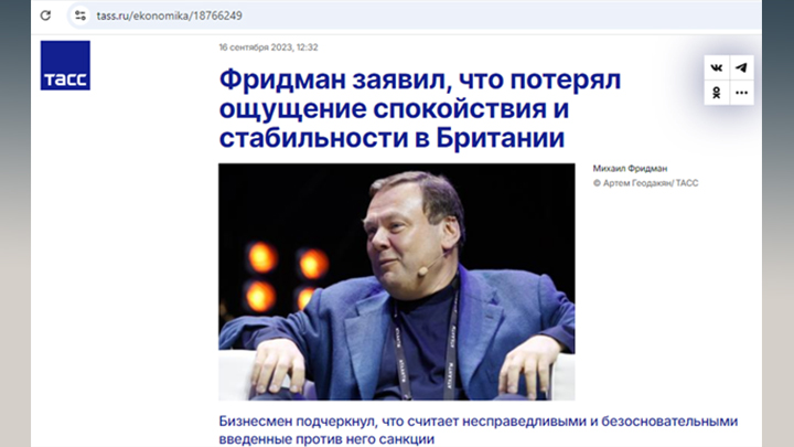 Сколотив капитал в России, он укатил в Великобританию, но в марте 2022-го последовали санкции и обвинения в отмывании денег. Дело дошло до обысков в лондонском особняке. Фридман стал жаловаться, что прозябает в нищете — не на что было нанять прислугу. В интервью "Таймс" он заявил, что Великобритания по умолчанию считает преступниками всех богачей из России: