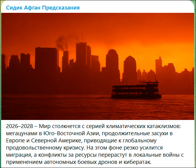 По прогнозу Афгана, в этом году наш мир столкнется с серией климатических катаклизмов. Скриншот ТГ-канала "Сидик Афган Предсказания"