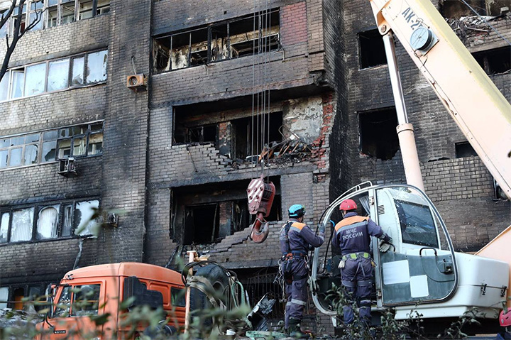 Эту версию сейчас активно тиражируют в соцсетях украинские спецслужбы. Но, по единодушному мнению наших военных журналистов, на борту Су-34 были только артиллерийские снаряды калибра 30 мм. И имевшийся боезаряд равен трети того, что перевозит стандартная бронемашина пехоты. В противном случае от девятиэтажки осталась бы груда обломков. Но сгорел один подъезд из двенадцати.