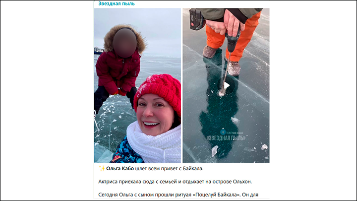 Многие звёзды с удовольствием пробуют аттракцион "Поцелуй Байкала". Скриншот ТГ-канала "Звёздная пыль"