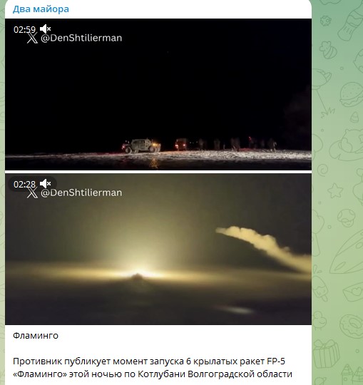 Однако и относиться к угрозам со стороны Киева тоже следует с долей внимания. Напомним, накануне противник поместил кадры момента запуска шести крылатых ракет FP-5 "Фламинго" по Котлубани Волгоградской области.