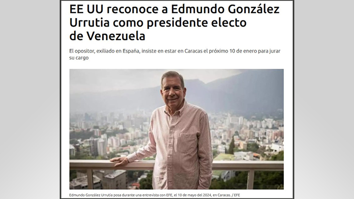 Соединённые Штаты признали Гонсалеса Уррутиа "избранным президентом Венесуэлы". Скрин: 14ymedio.com