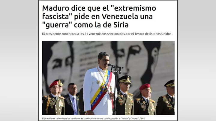 Мадуро: "В Венесуэле сирийский вариант не пройдёт". Скриншот: 14ymedio.com