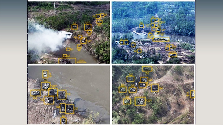 2022 год, переправа через Северский Донец у Белогоровки: по обеим сторонам реки — советская техника (принадлежавшая ВСУ и ВС России), которая в теории должна плавать, но в итоге была сожжена в ожидании наведения мостов. Скриншот: ТГ-канал GREY ZONE