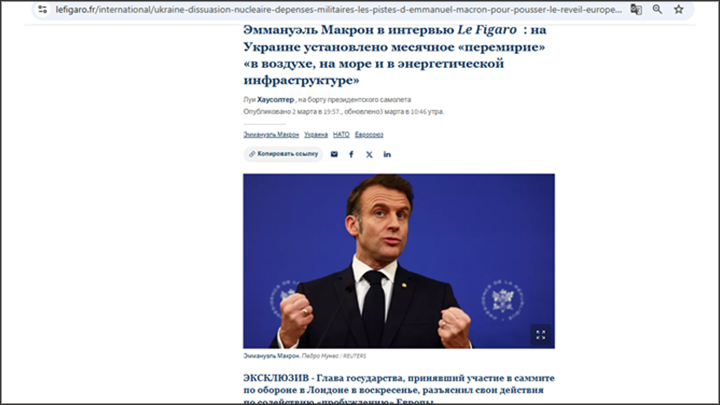 Автоперевод заголовка статьи Le Figaro не совсем точен: перемирия нет, но оно очень нужно врагу. Скриншот www.lefigaro.fr