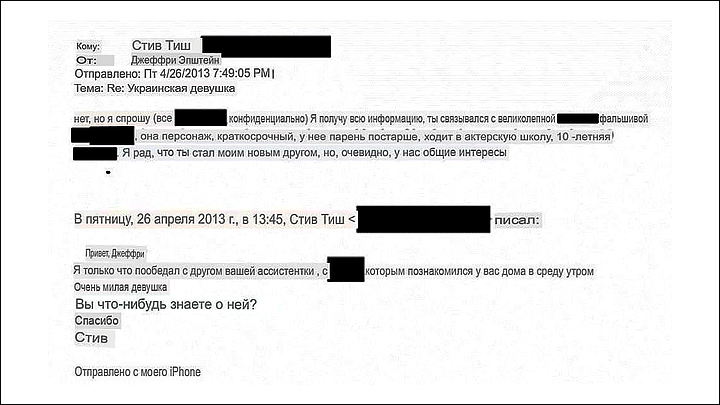 Переписка с Тишем. Обсуждается украинская девочка. Файлы Эпштейна (автоперевод)