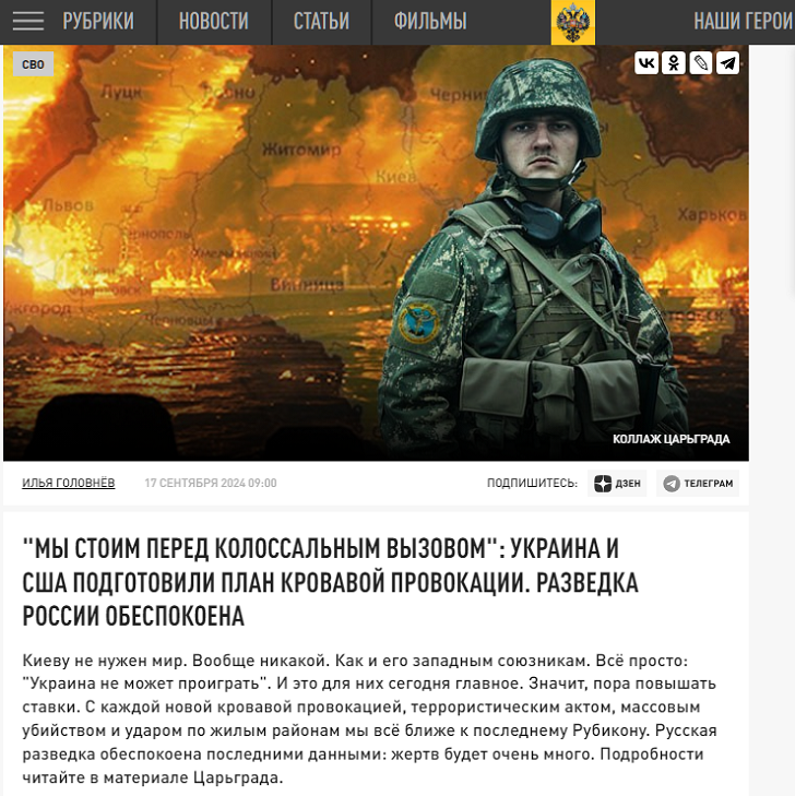 "Мы стоим перед колоссальным вызовом": Украина и США подготовили план кровавой провокации. Разведка России обеспокоена Фото: Царьград