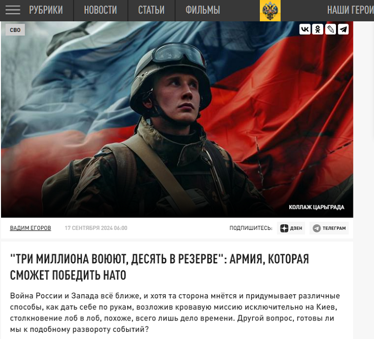 "Три миллиона воюют, десять в резерве": Армия, которая сможет победить НАТО Фото: Царьград