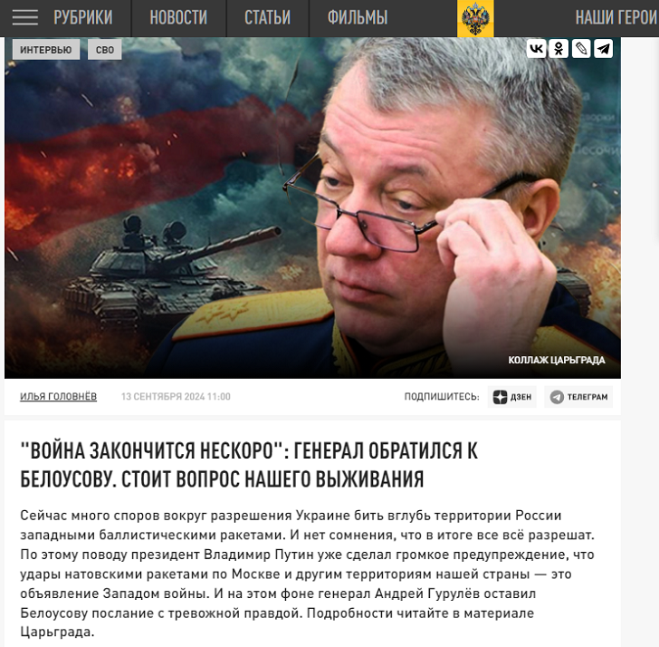 "Война закончится нескоро": Генерал обратился к Белоусову. Стоит вопрос нашего выживания Фото: Царьград