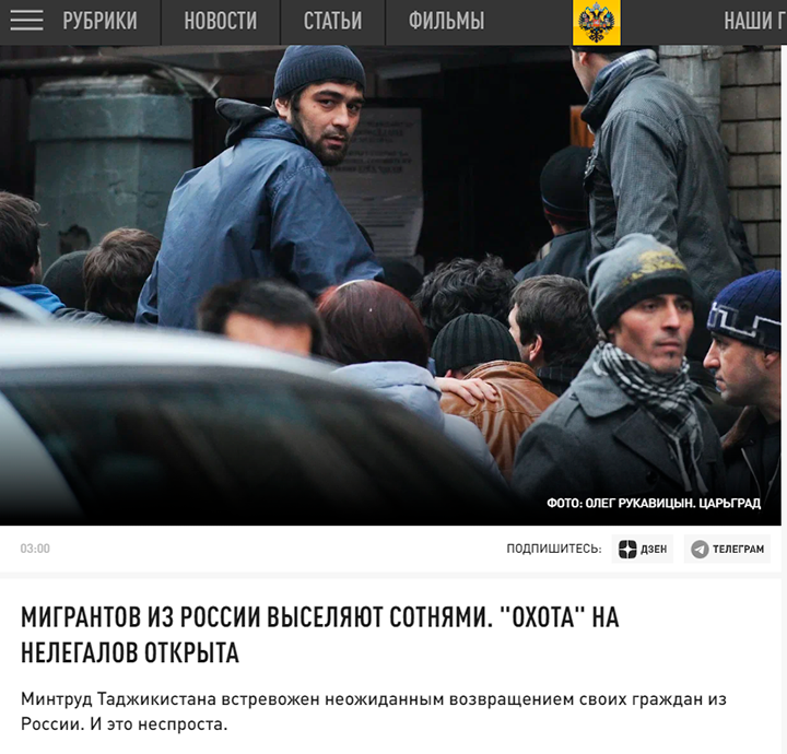Эй, мигрант, давай, до свидания. Скрин с сайта Царьграда