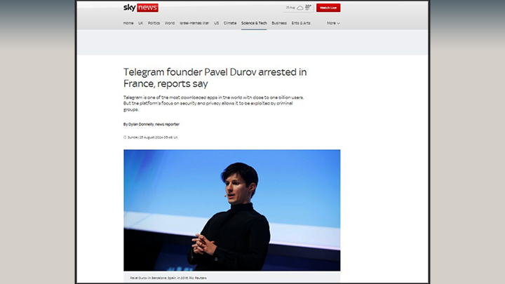 Sky News считает, будто вся проблема в "преступных группах", которые используют Telegram. Скриншот: Sky News