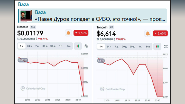 Крипта Дурова после известий о его аресте упала. Скриншот: тг-канал Baza