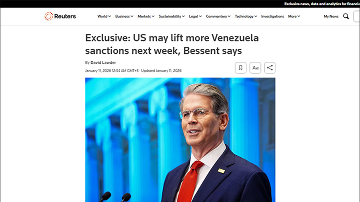 Бессент утверждает, что на следующей неделе США могут снять часть санкций с Венесуэлы. Скриншот: Reuters