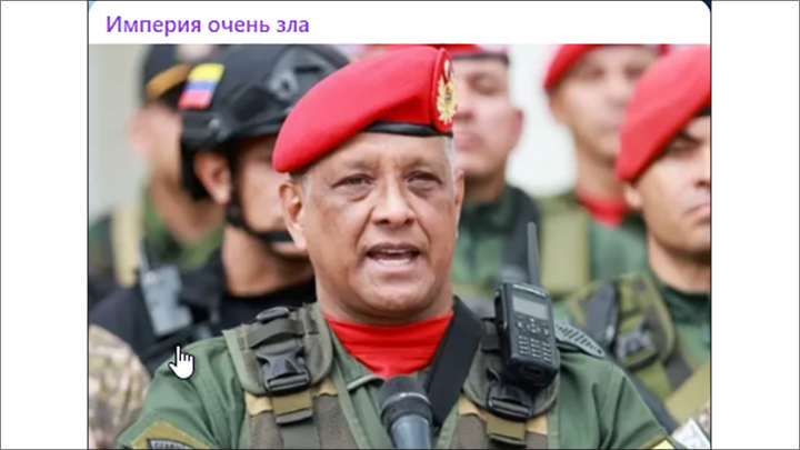 Глава контрразведки и почётной гвардии президента Венесуэлы генерал Хавьер Маркано Табата. Скриншот: ТГ-канал @verysexydasha