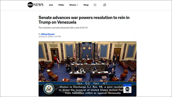 Американский Сенат продвигает резолюцию о военных полномочиях, надеясь обуздать Трампа в вопросах Венесуэлы. Скриншот: ABC News